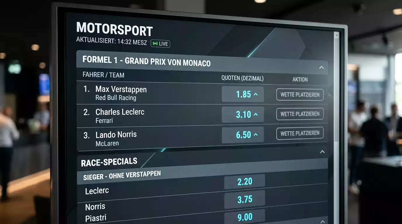 Bei regulierten europäischen Anbietern liegt der durchschnittliche Quotenschlüssel bei 93,7 Prozent. Das ist der RTP – Return to Player. Je näher du an 100 Prozent kommst, desto weniger Marge zahlt ihr als Wetter. Bei Motorsport-Wetten variiert der Quotenschlüssel je nach Event: Große Rennen wie Monaco haben oft bessere Quoten als kleinere Serien.